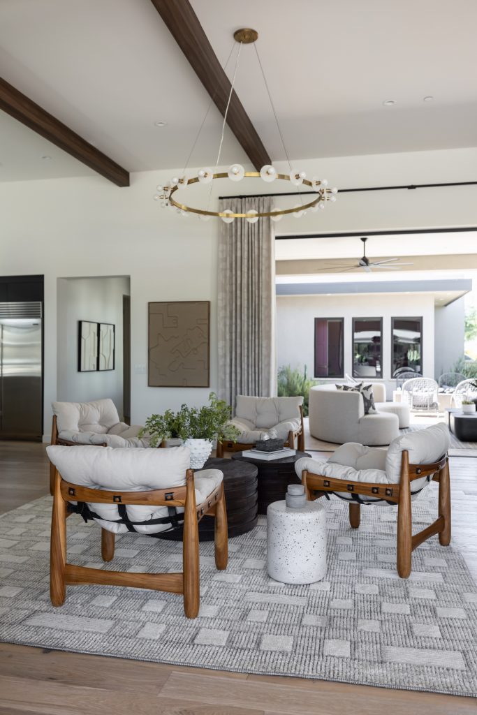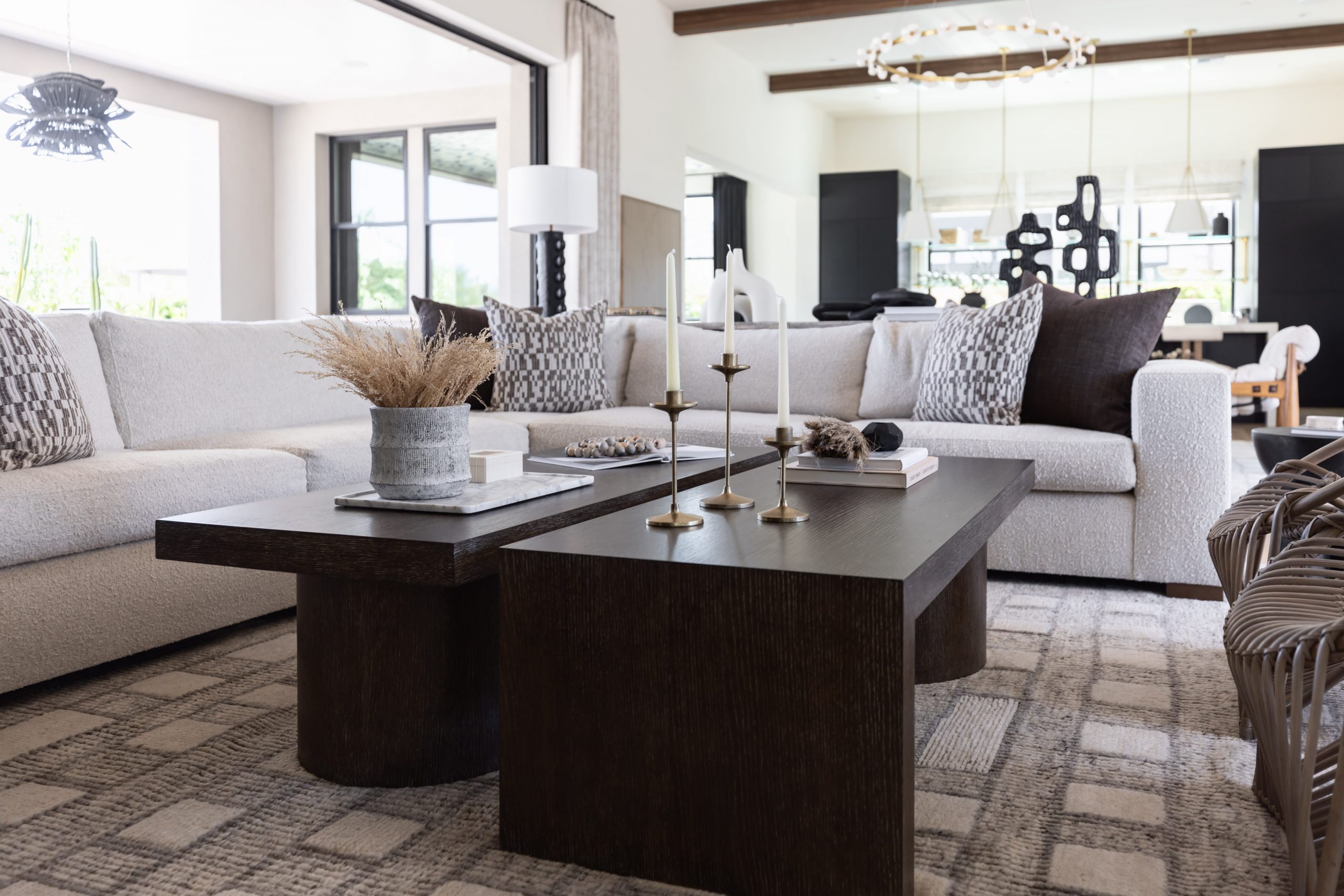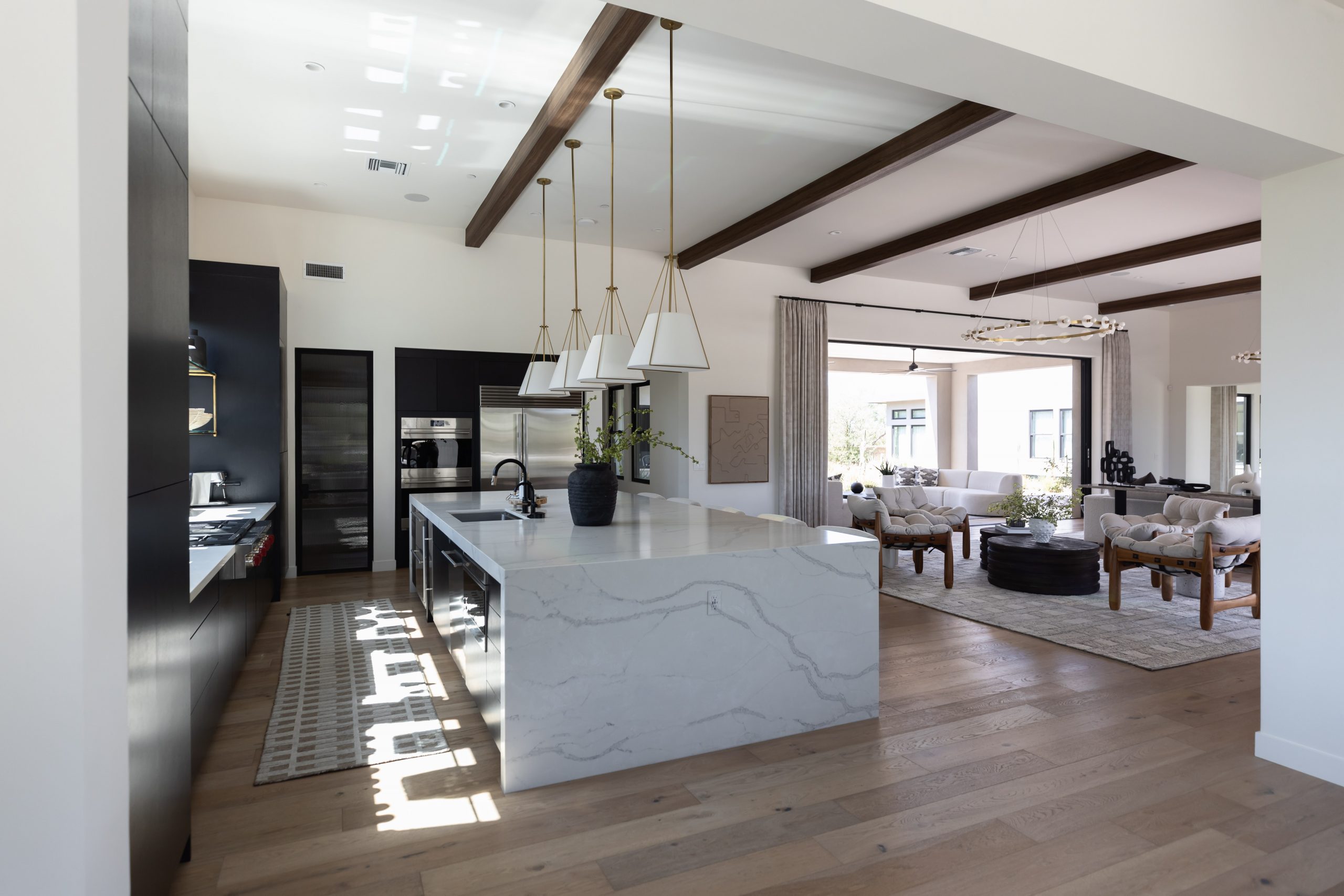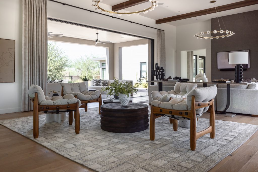 - Sourcing to fit existing pieces: Sourcing large-scale rugs appropriate for the generous room proportions typical of North Scottsdale homes + Ensuring proper counter stool height for the substantial 3-inch stone slab island