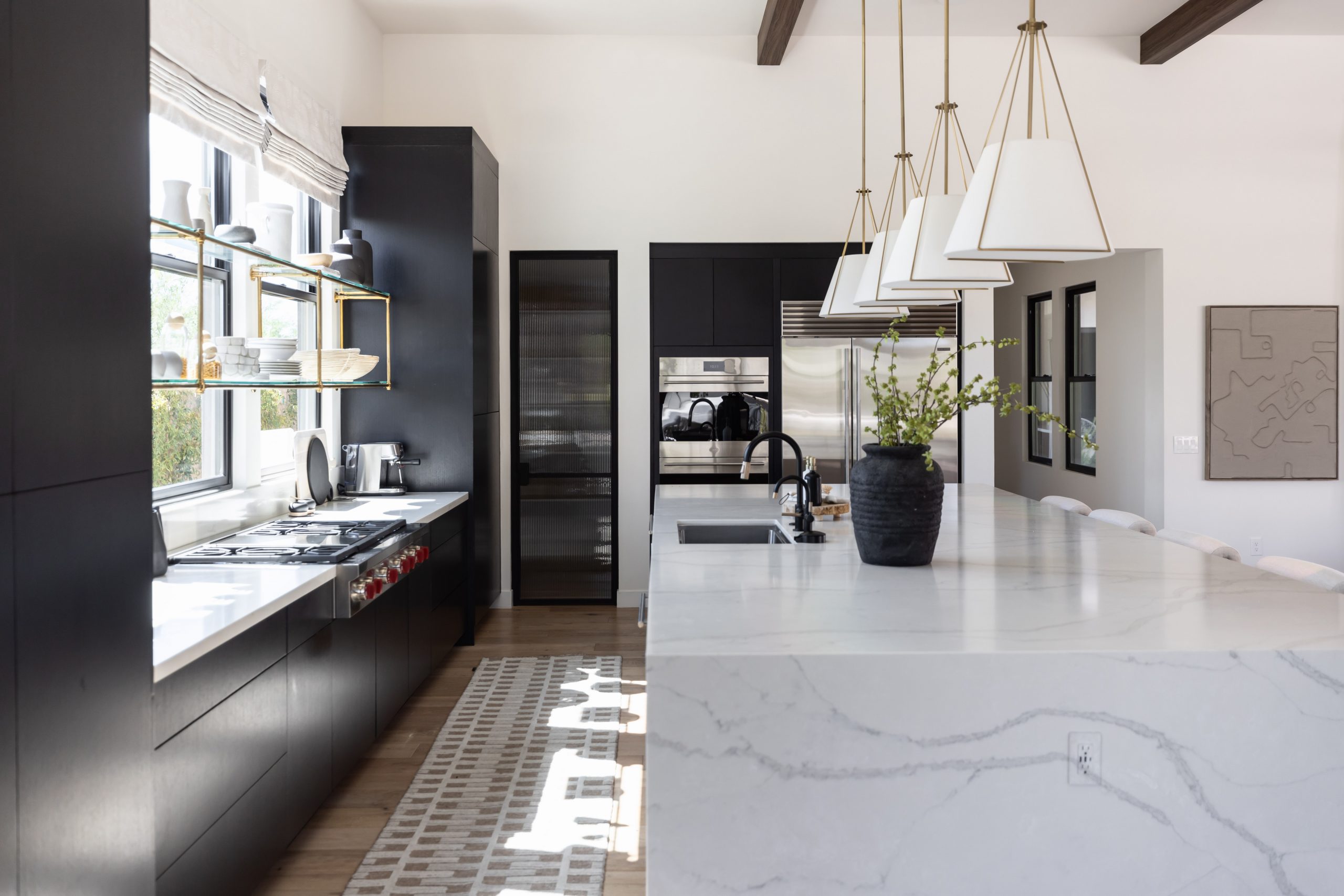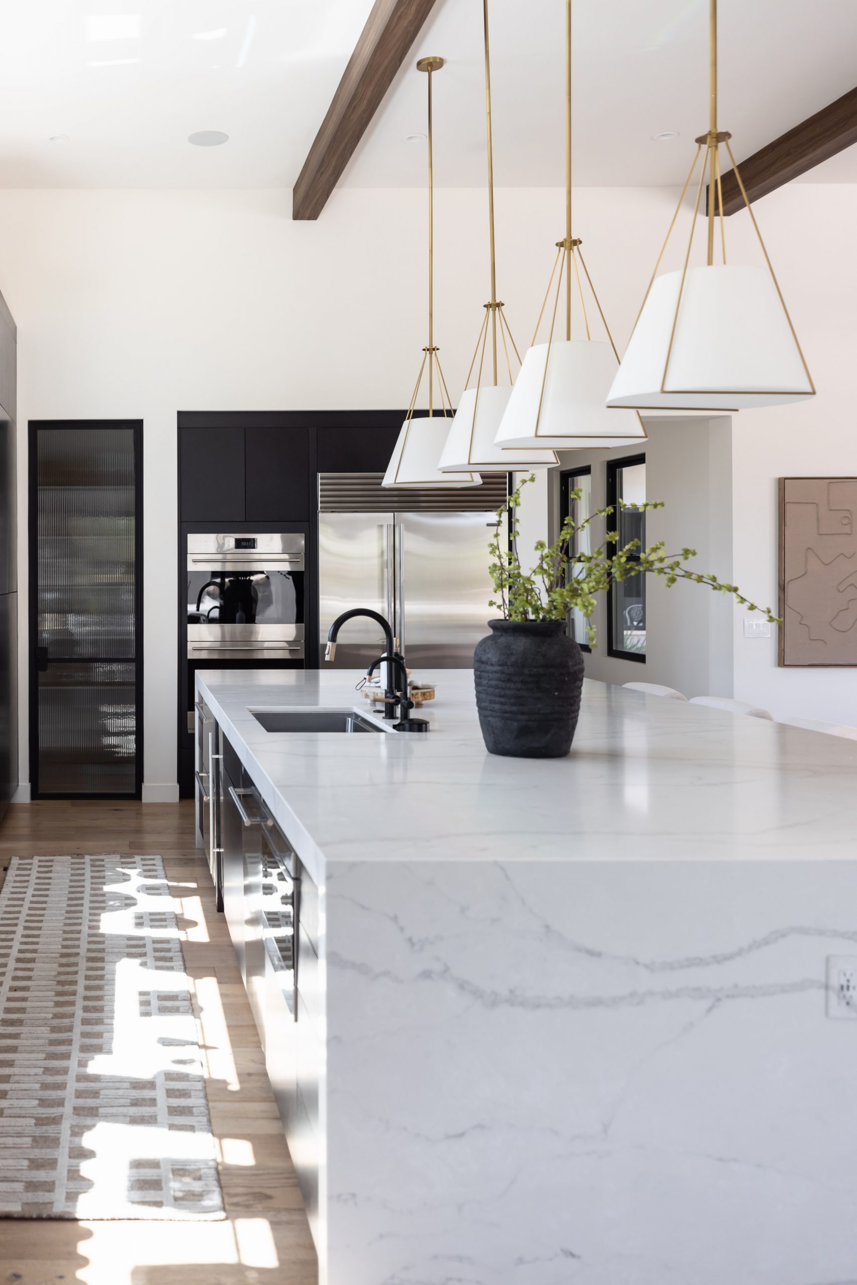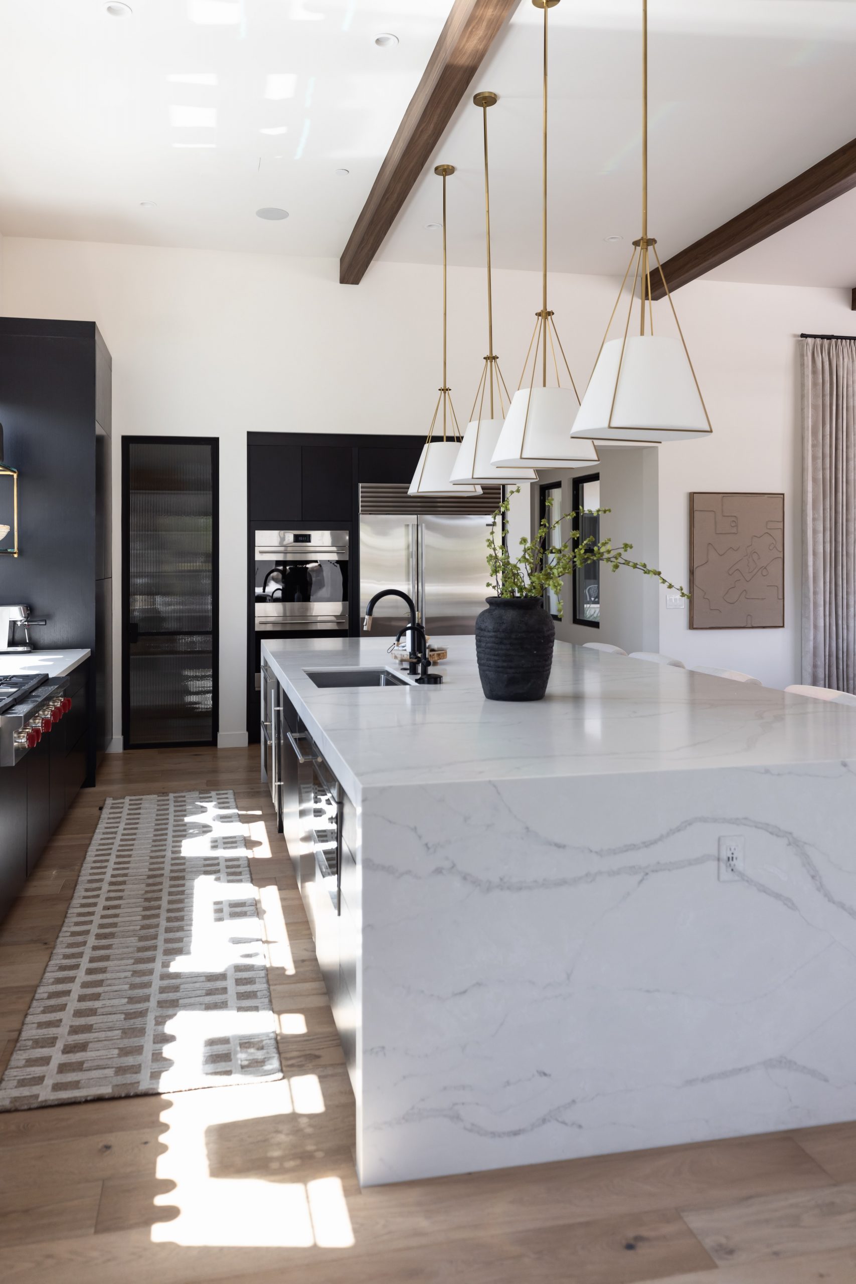 - Sourcing to fit existing pieces: Sourcing large-scale rugs appropriate for the generous room proportions typical of North Scottsdale homes + Ensuring proper counter stool height for the substantial 3-inch stone slab island