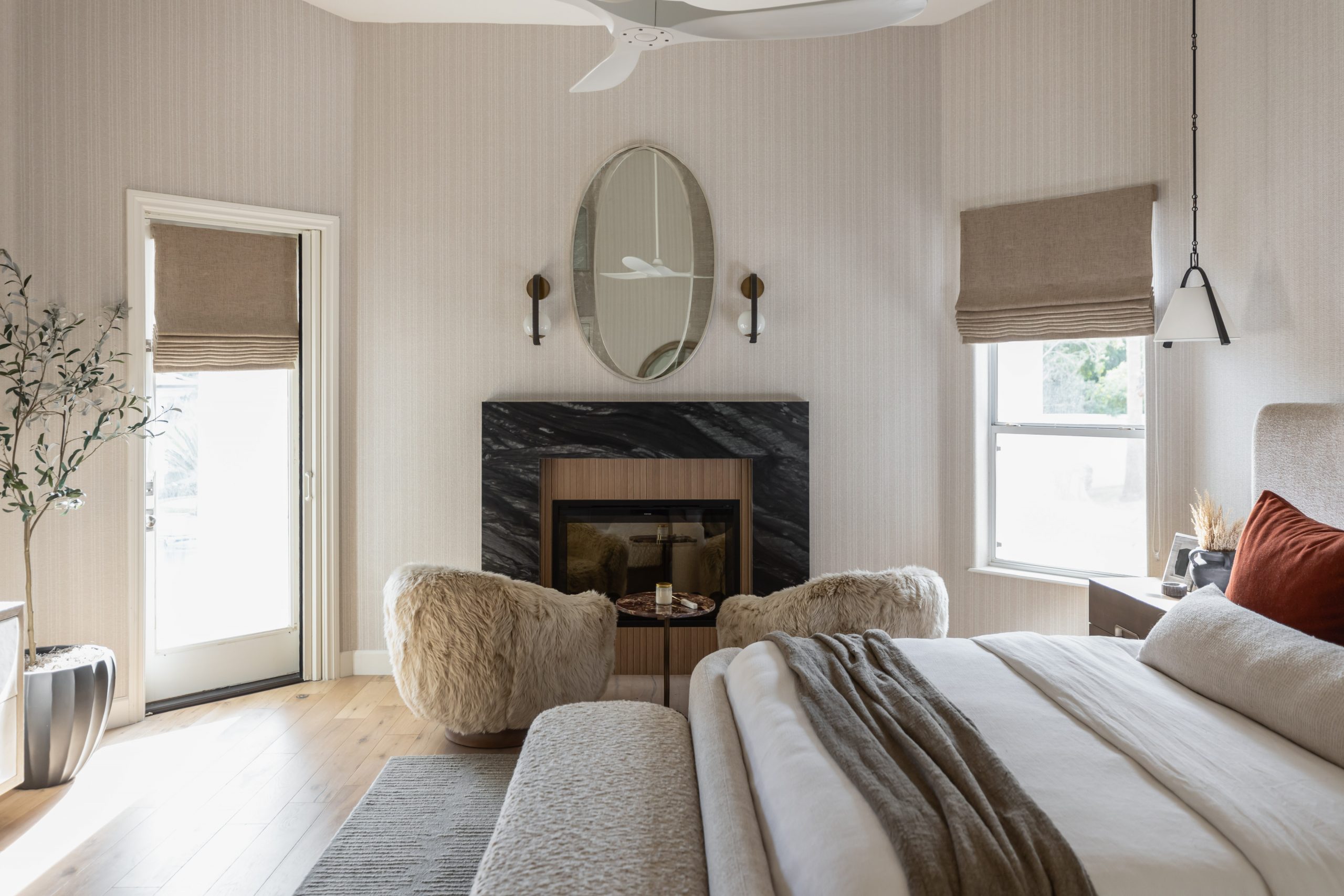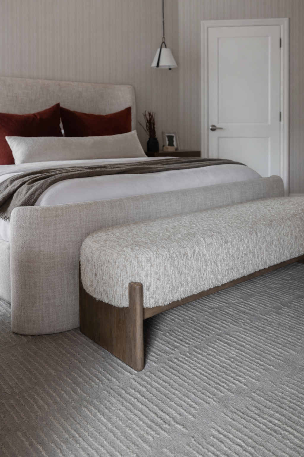 Refined Yet Resilient Materials: Carefully source performance fabrics and durable finishes that maintain a soft, organic look while supporting everyday wear and tear. Achieving a serene, hotel-like primary suite and an elevated family room required materials that feel luxurious but are never precious.
