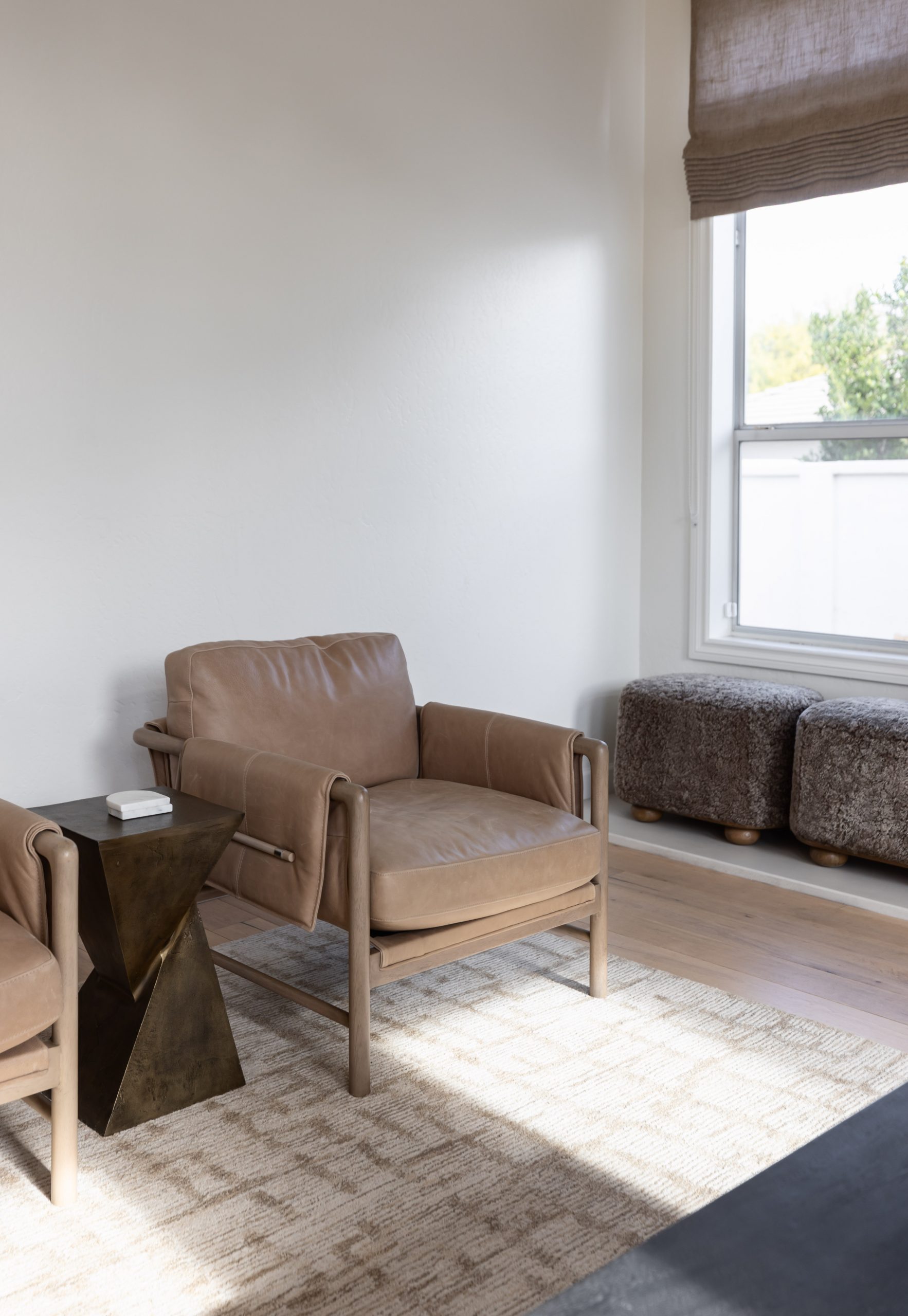 - Lounge Chairs by Four Hands: Harrison Lounge Chair– The chair blends mid-century style with modern edge, featuring a solid parawood frame, stainless steel accents, and top-grain leather. Its plush, layered seat offers comfort while maintaining a sleek, sophisticated look.