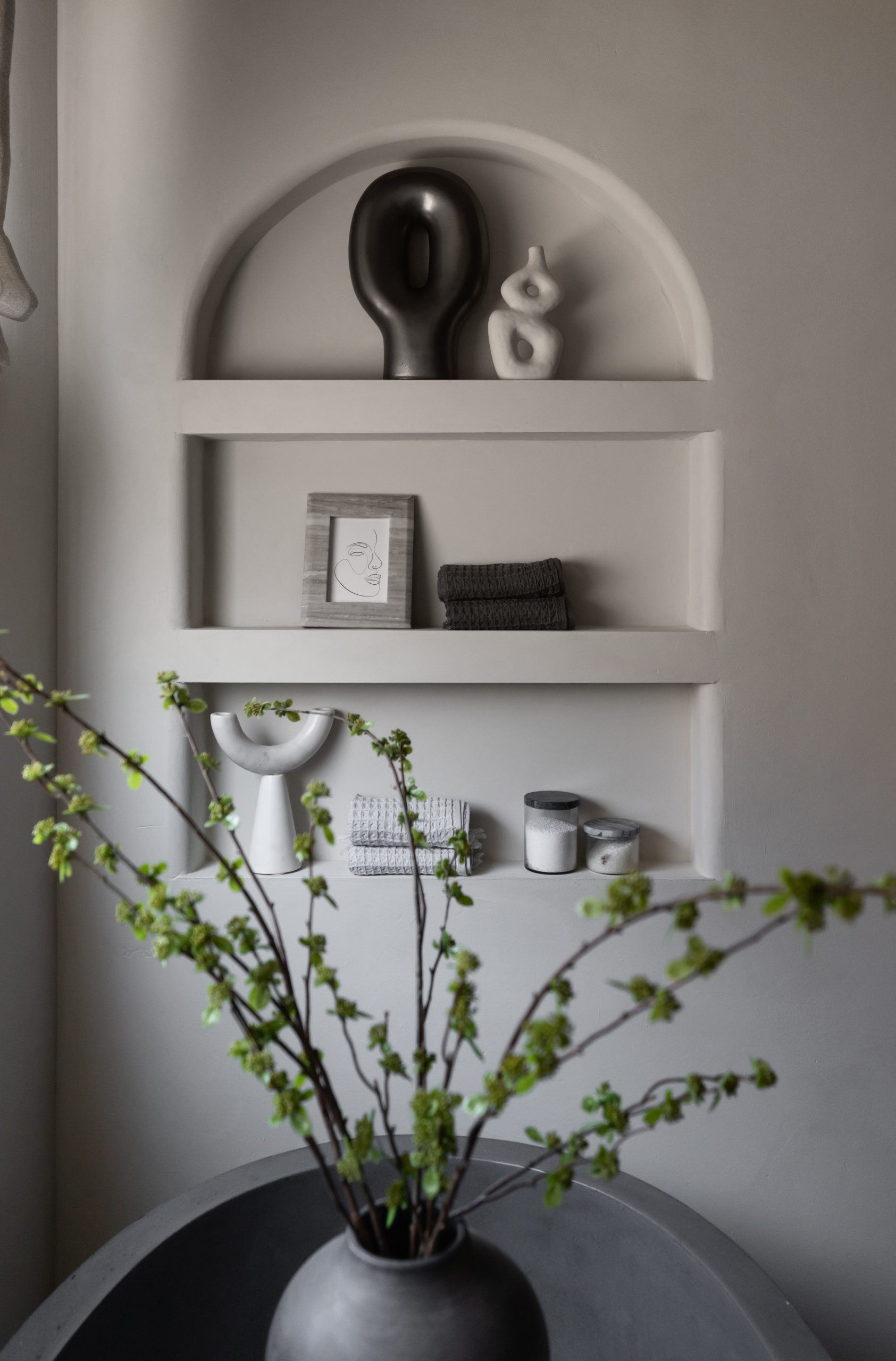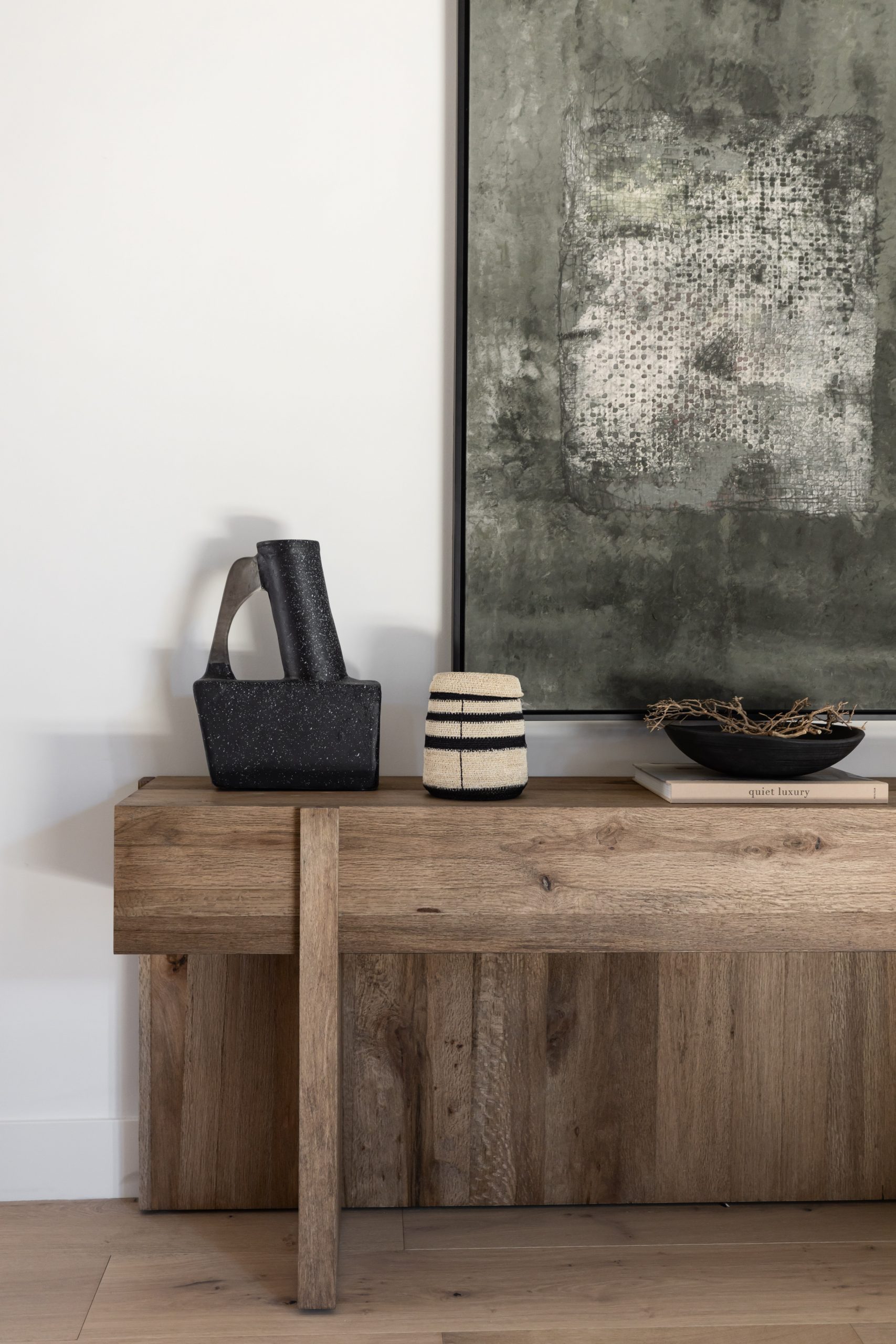 This project began as a complete remodel of a 2000s builder-grade Mediterranean home in a gated North Scottsdale neighborhood. Our client, a digital entrepreneur, wanted his first home to be a retreat—quiet, grounded, and reflective of his calm lifestyle. Though the home’s original architecture didn’t lend itself naturally to traditional wabi-sabi design, we leaned into the spirit of the philosophy—simplicity, imperfection, and tranquility—while working with the existing structure to deliver something timeless and deeply personal.
