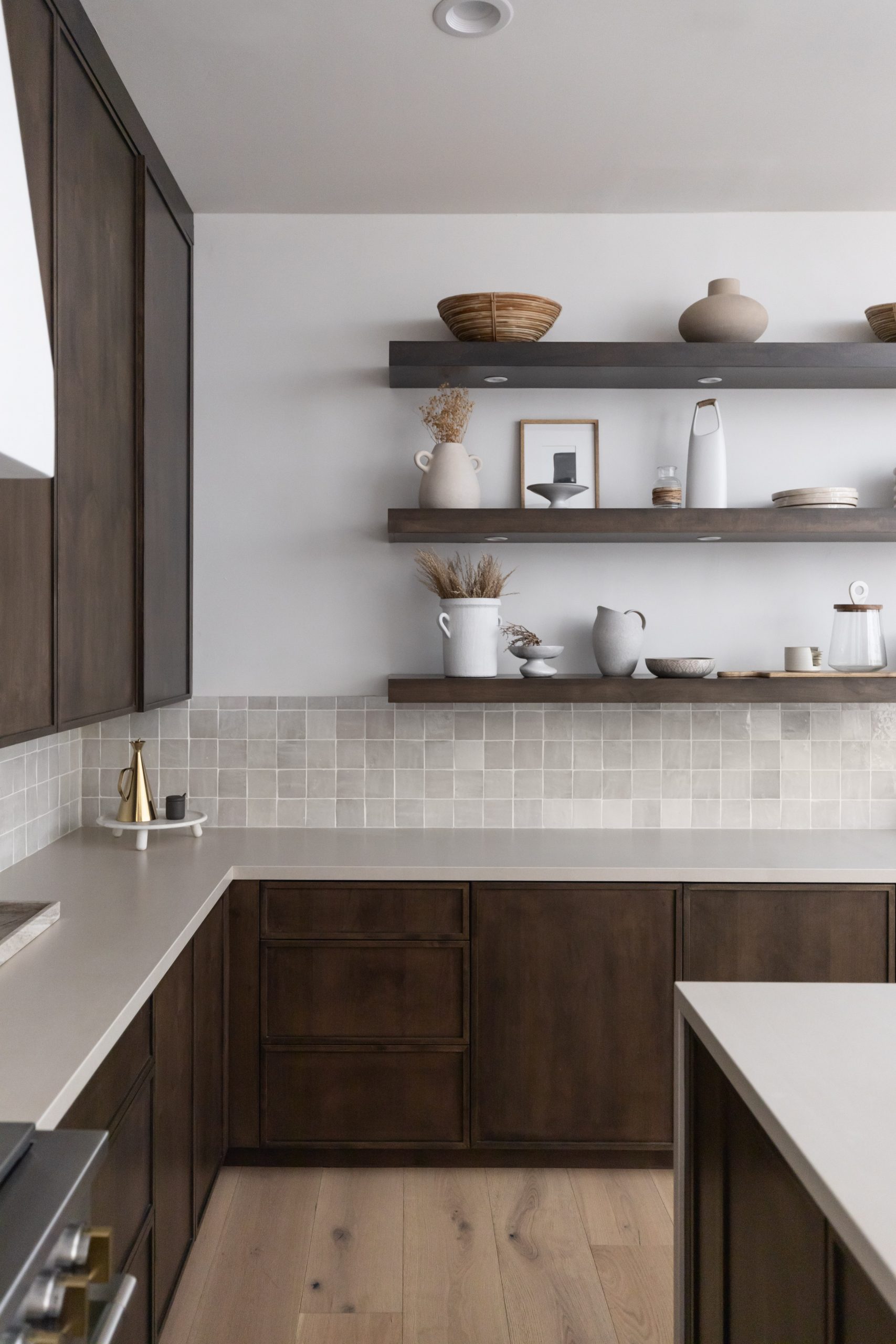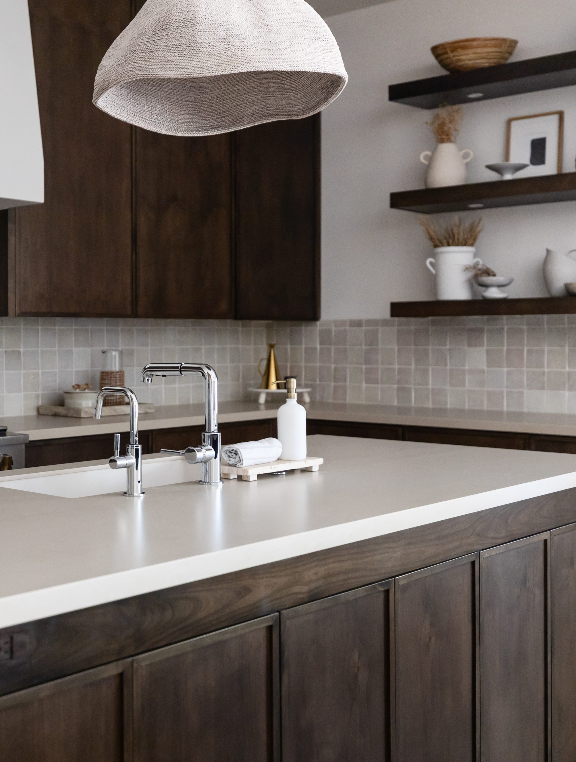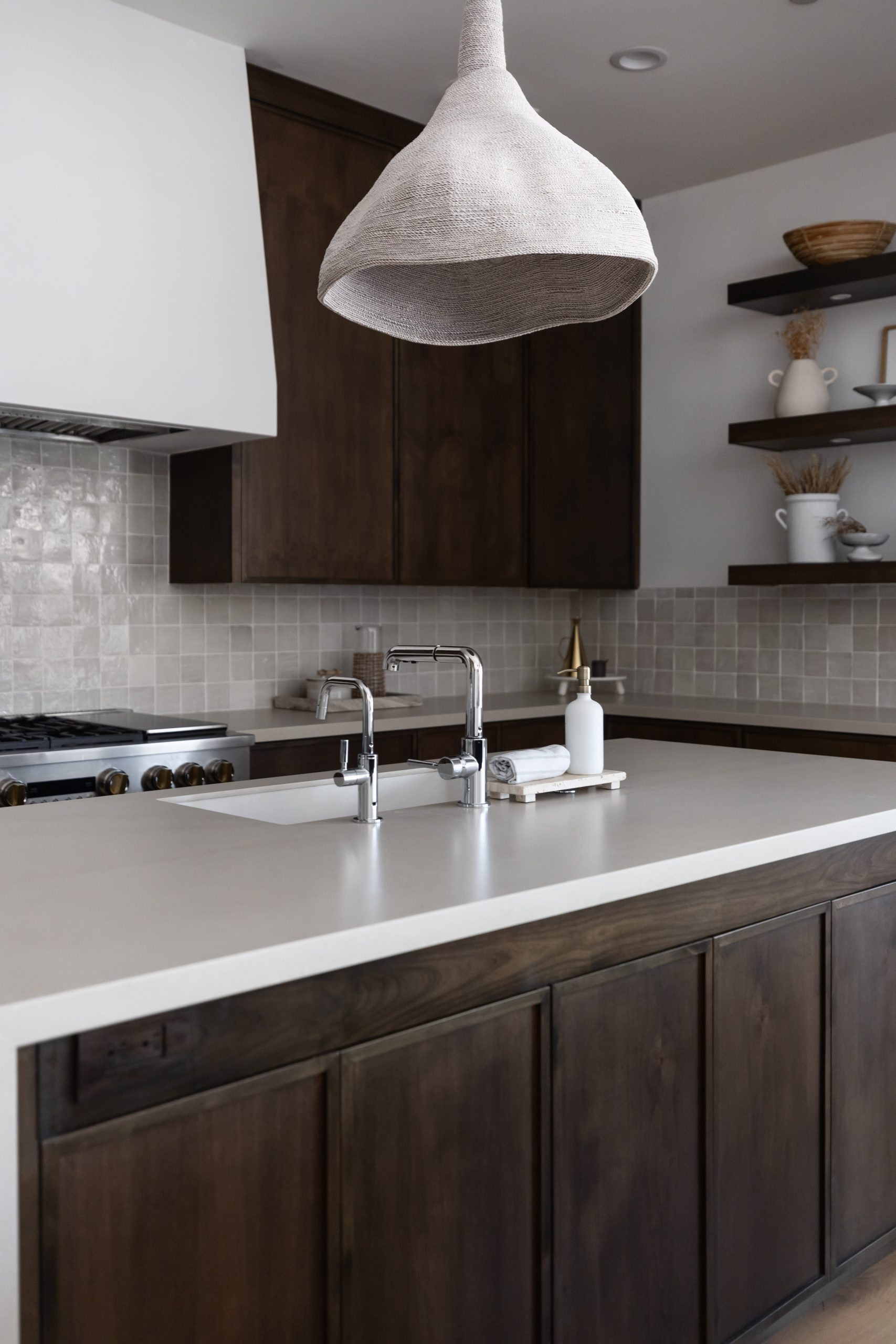 - Kitchen Backsplash: Handmade zelligre tile, chosen for its natural imperfections that give it the perfect “imperfect” look.