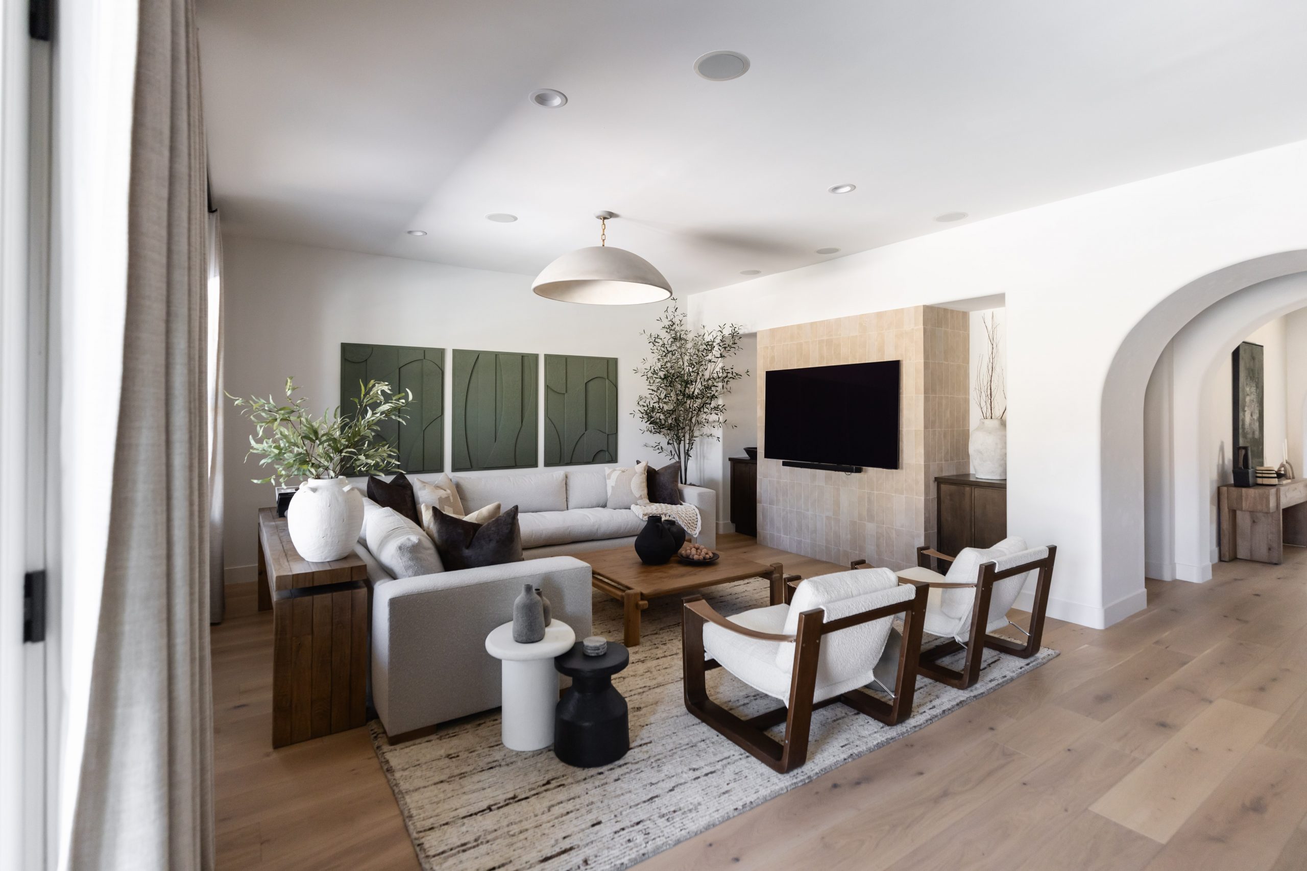 - Flooring: Engineered hardwood planks chosen for the character and depth it adds to the space.